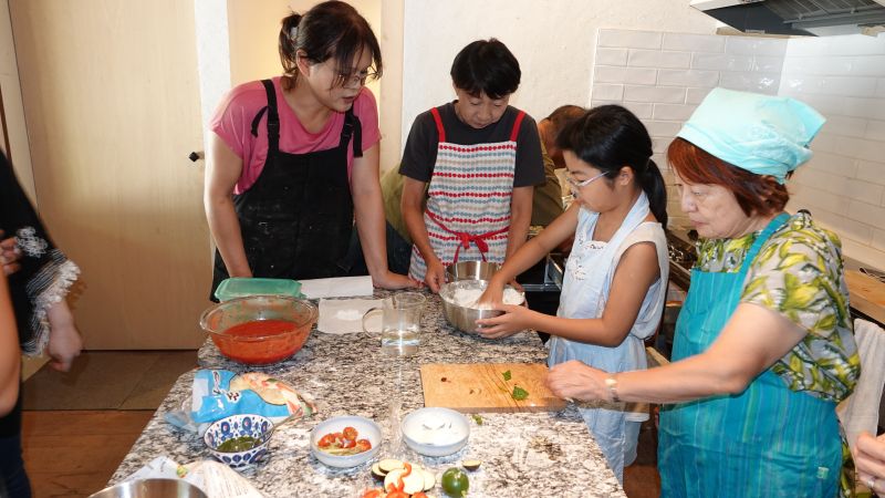 谷津田文化祭の一環で行われたピザパーティー。会場の谷津田ビジターセンターで、無農薬無化学肥料ではじめて収穫した麦からできた小麦粉をみんなで調理しました。子どもたちも、生地作りや、トッピングなどたくさんお手伝いをしてくれました。 ピザ窯も耐熱レンガを積み上げて作られたお手製のものです。事前に試行錯誤して完璧な焼き具合になるように調整してくれたおかげで、本格的なピザとなりました。具材も、トマトやズッキーニ、生ハムやシーフード、イチジクまで盛りだくさん。色とりどりのピザが焼きあがり、完成したとたんにみんなであっという間にぺろり。小麦を収穫した喜びを感じながら美味しくいただきました。 会場では、ラベンダーサシェ作りやミニ竹とんぼ教室、鳥のお話、そして楽しいおしゃべりと思い思いに楽しい時間を過ごしました。県外での製粉や様々な準備をしてくれた伊勢戸さん、佐藤さん、暑い中で火の番をしてくれた平沼さん、小田さんをはじめとした皆様、ありがとうございました。 報告:岩上由香利