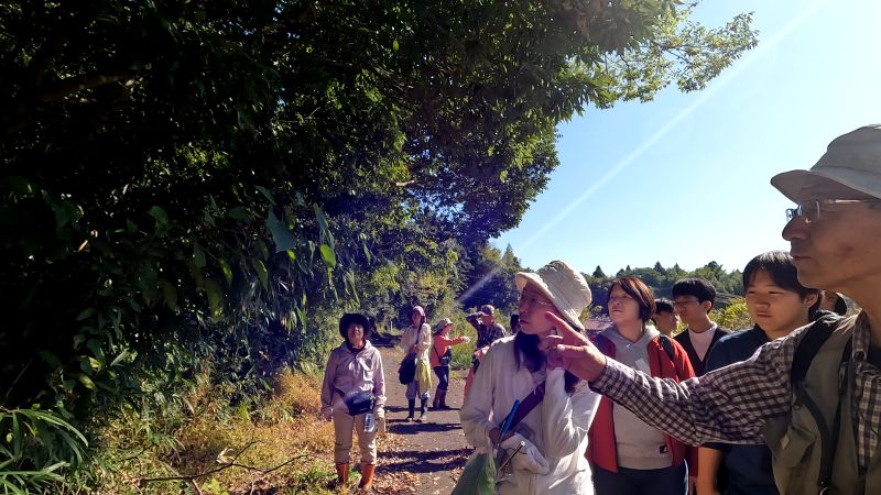 2024年11月2日に、東邦大生向けの谷津田自然観察会を行いました。あいにくの雨模様で足場の悪い中でしたが、男子3名女子3名の計6名の東邦大生が参加してくれました。田中正彦理事の解説のもと、捕まえたオケラを手で包んで、穴を掘る動きの力強さを感じたり、フユイチゴやヤマノイモのムカゴの味を楽しむなど、体験を 通して里山の生物多様性に触れ合ってもらいました。 4月に新理事に就任して初めて企画したイベントで、未熟さゆえに段取りが悪く、ご迷惑をおかけしてしまう ことが多々ありましたが、イベントの事前準備から事後を通して学びの多い、非常によい経験になりました。 谷津田の自然を案内する時に、どんなことを意識して解説をするのか。また、参加者が感じた声を聞いて今後 に生かすために、アンケートなどでフィードバックをもらうことが如何に大切で、またうれしいことなのかを 実感しました。 改めて、今回の東邦大谷津田自然観察会にご協力をいただいた田中正彦理事、ちば環境情報センターの皆様に 感謝を申し上げます。今後とも、先生方のご教授をいただき、学びと保全活動に尽力していきます。よろしくお願いします。 報告:東邦大学 理学部 生命圏環境科学科1年 鈴木郁也