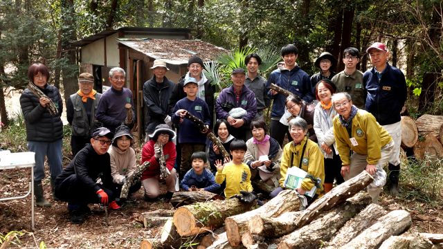 千葉市環境保全課からの依頼を受け、環境講座「森の木でシイタケを育てよう」を開催しました。下大和田の森で我々CEICのスタッフが講師役です。参加者は10名。環境講座以外の参加者も15名いました。 下大和田の森でちょうど枯れたコナラを伐り倒した後でもあり、その木材を榾木として利用しました。事前にスタッフがシイタケの植菌用のコマを用意。説明文も準備しました。 森の中に穴あけ作業のインパクトドライバーの軽快な音が鳴り響きます。そして植菌作業。皆さん夢中でこれらの作業をしていました。植菌する榾木はあえて小さめの物にしました。お持ち帰りできるようにするためでした。傍らにある我々のシイタケ栽培の榾木も気になるようで、皆さん栽培について熱心に質問されました。 作業の合間には谷津田の自然観察もしました。ちょうどアカガエルの生んで間もない卵塊が17個水辺にありました。 参加者25名(大人19名、大学生1名、小学生4名、幼児1名) 報告:平沼勝男