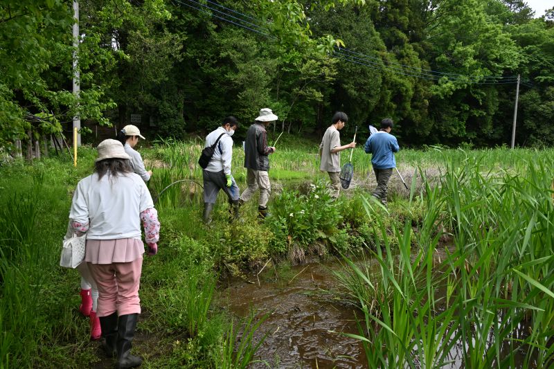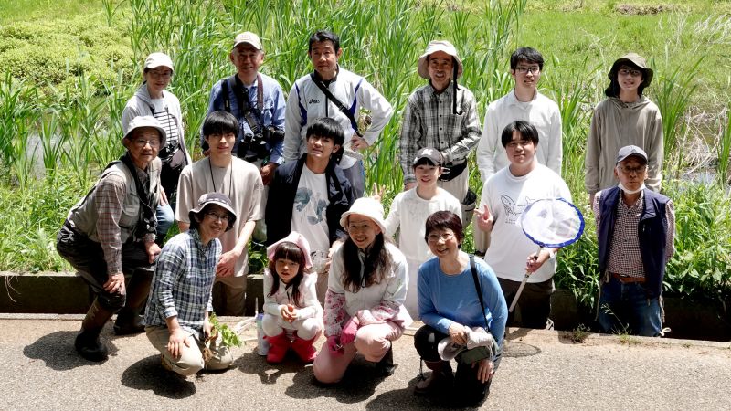 この日はいつもの観察コースの他に、復田した田んぼや相川さんの畑まで足をのばしてみました。最近雨が多かったおかげか、大型カタツムリのミスジマイマイが活動している様子を観察することができました。 新たに復田した田んぼでは、ミナミメダカやタモロコなど、YPP田んぼと同じ種類の生きものが見られましたが、まだまだいない生き物も多かったです。YPP側の水路や山では、オレンジ色の羽が美しいニホンカワトンボのオスと、かわいいサイズのヒバカリと出会えました。 参加者16名(大人6名、大学生5名、小学生1名)     報告 鈴木郁也
