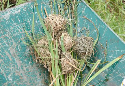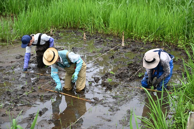 復田作業「アシの刈払いと苗の間引き」 2024年 7月 7日 8:00~9:00 晴れ