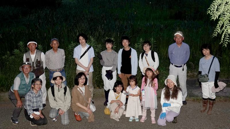 これまで、浮遊する光の記憶といえば、子供の頃にバンコクで飛ばしたコムローイだった。空飛ぶランタンが、蒸し暑い夜の空に無数の光の粒となって浮かんでいた。 炎のように揺らぎながら、音も無く浮かび上がるヘイケボタルの光に、そんな昔の記憶が思い起こされた。日没からしばらくして、ぽつり、ぽつりと現れたその光は、しだいに数を増す。一本の木に集まって電飾のように見せるかと思えば、逃げもせず人の側まで寄って飛んだりもする。子供たちは、光を手で掬い上げるようにしてホタルを捕る。遠目に見るとやや青白く見え、しかし手に取るとケミカルな黄緑色に、腹の節が発光している。「蛍光色」とはよく言ったものだと思った。 帰り道、対向車のライトがやけに眩しい。観察中は、夜闇に目が慣れていたのだと気づく。うっすらとしか見えなかったお互いの表情も、興奮気味の話し声から読み取れた。環境が変わってしまっても、あの場にいた一人一人の心の中に在り続けてほしい光景だった。 参加者18名(大人13名、大学生1名、中学生1名、小学生2名、幼児1名)  報告 Asa Okiru
