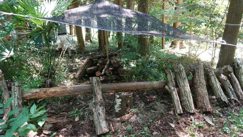 前日が夏至でしたが、それにしても朝から熱い。まだ梅雨のはずですが真夏のようです。熱中症に気を付けながらの作業となりました。 復田田んぼは完全に干上がっていました。川の堰を直し再び水が入るようにしました。田んぼ周辺の草を刈り払い機で刈りました。すっきり田んぼに蘇りました。畑では、ラベンダー畑の雑草取りと、新たに綿の苗を10本近くうえました。森の中では刈り払い機で下草刈りをしました。観察会の経路やT字路までの道路際、水路際の畦の草刈りもしました。 最後に全員でシイタケです。新しい榾木を井桁状に組み、日よけシートの覆いを付けました。 参加者7名(大人5名、大学生1名、小学生1名)  報告:平沼勝男