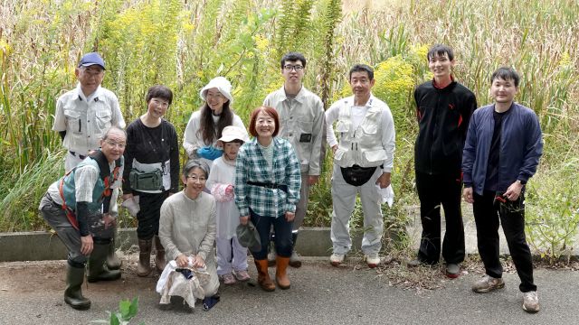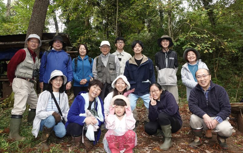 朝晩の気温が下がり、すっかり秋らしくなってきました。10月に雨が多かったせいか、森や道端にキノコが目立ちます。多くの動植物が次の世代に命を託すために卵や種子を残す季節です。アオジやジョウビタキなどの冬鳥も目にするようになりました。今回はキノコや動物を利用して種子を運ばせる「ひっつき虫」を中心に、深まりつつある秋の森と谷津の生きものたちを観察しました。 できたばかりの来年のカレンダー「下大和田谷津田ごよみ2026」を参加者に配布してから、谷津田を歩きました。タコノアシやガマの葉などが茶色く枯れ、深まりゆく秋を感じました。田んぼで最近数が少なくなったマルタニシを見つけ、オオタニシとの外見上の違いを観察しました。森に入るといたるところにキノコが傘を開いていて、地面から生えているのか木に付着しているか、傘の形や色など 16詳しく観察・記録しました。アラゲキクラゲを見つけて「家に持ち帰って食べよう」という方もいました。 フユイチゴがオレンジ色の実をつけていて皆で食べてみましたが、やはりまだ酸っぱいという感想が多かったようです。記念写真を撮影して、午前中で観察会を終了しました。  参加者18名(大人13名、大学生3名、高校生1名、小学生1名)