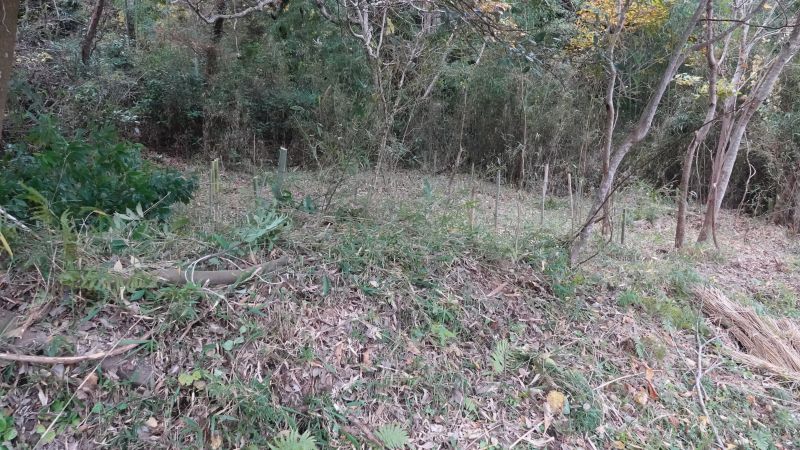6日前の日曜日に下草刈りをしました。今日は、その後の続きの作業を行いました。動きやすい季節に、やれるだけのことをしておきたいものです。  枯れかかり倒木の危険がある木は、市が伐採することになりました。立ち入り禁止にした危険エリアを避けて、台地に上がれるように道筋を整えました。  以前、大規模に樹木が伐採された後、トモエソウが繁茂した場所がありますが、その後樹木がうっそうと生い茂り、林床に光が届きにくくなったため、トモエソウの群落は見られなくなってしまいました。今回はそのあたりの樹木を切り、つる植物などを取り除き日光が林床に届くようにしました。またトモエソウが生えてくることを期待します。  このような地味な作業は、一見つまらないと思われるかもしれませんが、やってみると結構、達成感があります。また、クモなどの小さな動物や勢いのある植物たちに囲まれて何とも言えない癒しを感じて、幸福感に満たされます。小さな生き物が一生懸命に生きている姿を見て、私も日々を大切に生きていきたいと思います。 午後は新しく造った台地上の畑に、玉ねぎの苗とニンニクを移植しました。 参加者9名(大人8名、幼児1名) 報告 高橋久美子