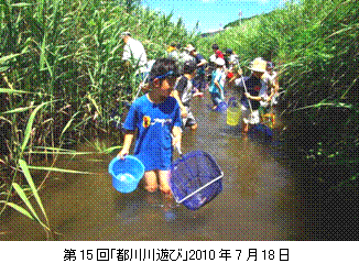2010年7月18日、第15回「都川川遊び」(主催:NPO法人 ちば環境情報センター)が青空の下、都川多部田橋上流で実施されました。参加者の舟生(ふにゅう)和美さんから感想が寄せられましたので掲載いたします。