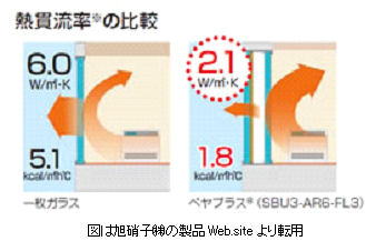 熱貫流率がカタログでは従来サッシ(一重窓)と比べて1/3(2階は半分)に下がります。