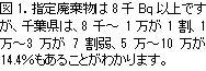 実は、千葉県の指定廃棄物の放射能濃度は、5万~10万Bqのものが14.4%もあり、かなり高いことがわかります(図1)。県内各地から市街地の中を運ぶ過程で交通災害による放射能汚染被害の発生も避けられませんし、今後首都圏直下型巨大地震や東京湾北部地震も予想され、大津波や液状化による危険度の高い場所でもあります。東京湾に流出した場合には、内湾の漁業に深刻な影響を与える危険性も考えられます。