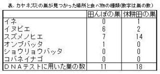 つまり、カヤネズミは、田んぼのお米をほとんど食べず、むしろ、困りもののイネ科の雑草や、イネを食いあらす害虫を食べてくれているということがわかります(表)。