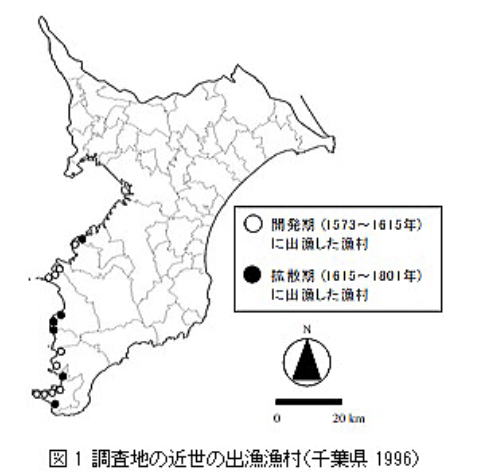 千葉県東京湾側の沿岸環境は、高度経済開発期以降に激変し、社会情勢変化を把握しやすい場所と判断したことから、今回の調査地とした。環境・産業については、松井(1929)、鈴木(1997)、漁村・港の整備については、千葉県(1996)の資料を引用した。また、経済規模の指標としては、中心性指数(商業的活動による経済規模を指標として1891年の千葉県の各町村ごとの商業税額と同年末の現住戸数を用いて算出した)を用いた(黒崎1990)。