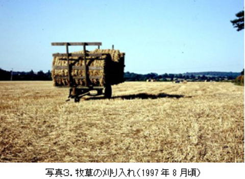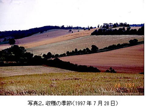 1996年9月から1997年8月までの1年間、妻と当時小学校5年生の長女、そして幼稚園年中組だった長男の一家4人で、英国の東部ケント州のアシュフォードという町に滞在しました。近くのワイという小さな村にあったロンドン大学のワイカレッジでカントリーサイド(田園景観)の保全管理の研究をするためでした。様々な手続きを済ませ、車を購入して大学までの30分ほどの通勤が始まりました。車窓からみえる景色は、小麦の収穫を終え、次の種まきのために畑が耕されていました。日本よりはるか高緯度にある英国では、10月になると日が短くなりますが、9月に播種された冬小麦が芽生え、茶色一色だった景色が濃い緑色に変わります。春になると麦類の緑色に交じって菜の花の黄色がモザイク状に広がり、やがて、麦類の穂がでてきて、6、7月頃に畑は淡い茶色に変わり収穫時期を迎えます。いわゆる麦秋です。麦類や牧草の収穫が終わり、8月には、畑に刈り取られた牧草が大きな束になって置かれ、1年のサイクルが終わります。この農作業のサイクルは、北半球の温帯の麦類を栽培しているところでは、多少の違いはあってもほぼ同じようです。