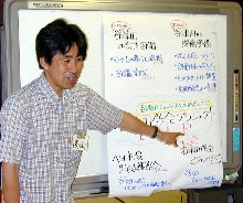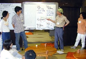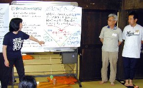 アイスブレーキングなどのアクティビティですっかり打ち解けてから、今年の実践行動計画づくりに入りました。今年はパートナーシップ、情報センターの充実・拡大、谷津田保全の3つの大きなグループができ、最後にはかなり具体的な計画ができあがりました。私は3回目の参加になりますが、年々、確実に充実した計画の内容になっていることを実感しました。