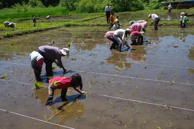 お天気に恵まれ、大勢のちびっ子も参加して田植えをしました。