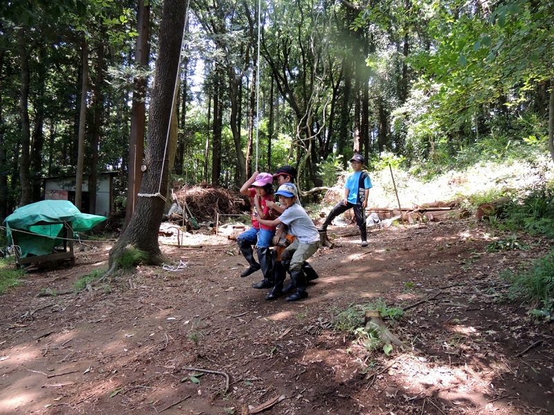 こども達も元気いっぱい大活躍、田んぼに入って草取りに参加したり、ザリガニやメダカすくい、森でブランコを楽しんだりと思う存分遊びました。